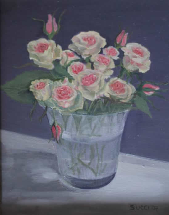 Miniature roses in glass vase